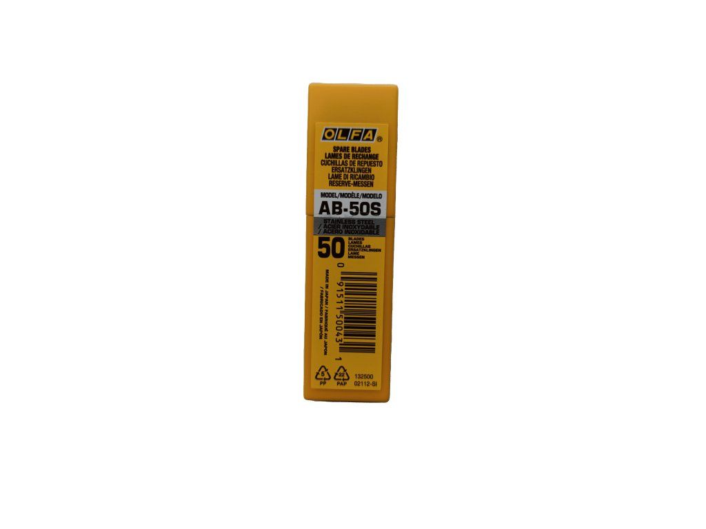 OLFA AB-50S je balení náhradních segmentových čepelí do odlamovacích nožů (tzv. utility knife / cutter).