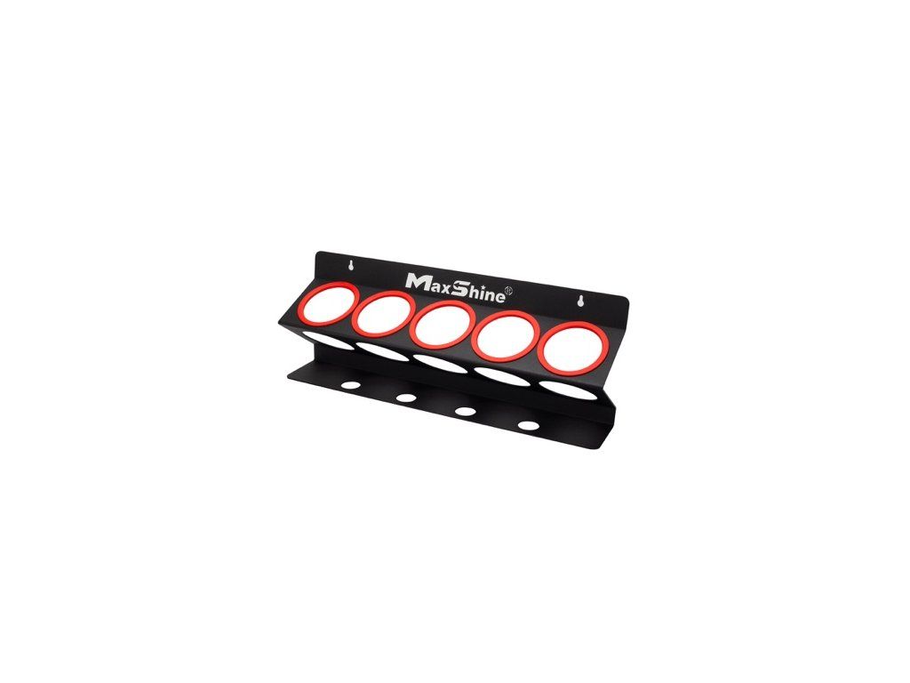 Nástěnný držák na rozprašovací láhve a lešticí pasty – s 5 otvory – pouze pro lahve Ø7,0 cm a Ø8,5,0 cm. Vyrobený z kvalitní oceli s černým lakováním, červené lemování jako dekorace a ochrana proti oděru. 5x šroub pro uchycení. Rozměry 54,5cm x 14cm x 20cm.Buďte první, kdo napíše příspěvek k této položce.