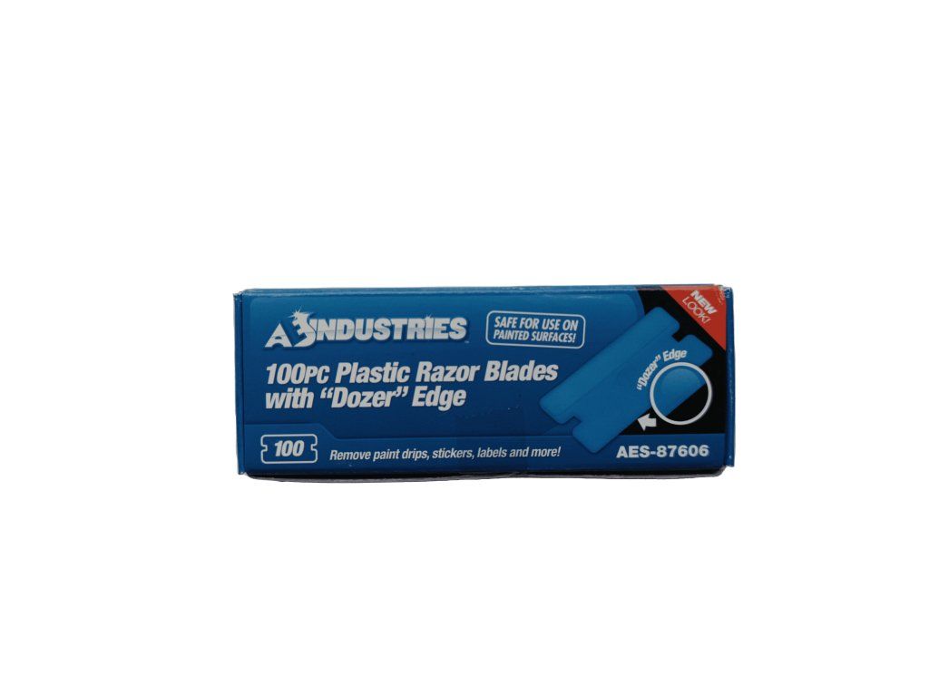 Plastové žiletky 1"(18x38mm)pro dokonalé odstraňování lepidla a zůstatků filmu z povrchů které lze snadno poškodit. Jako jsou spirály rozmrazovačů zadních skel automobilů anebo jiné citlivé skleněné povrchy. V balení 100 ks.