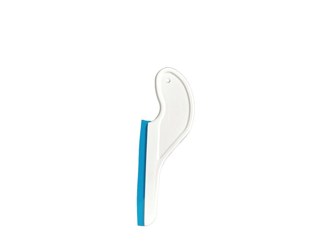 Bílá, tvrdá stěrka (23cm)s výměnným gumovým břitem (15cm) TIN GT118-6. Vyrobená pro vytlačování kapaliny na těžko dostupných místech (za reproduktory, za 3 brzdovým světlem a jiné) při instalaci zadních oken.