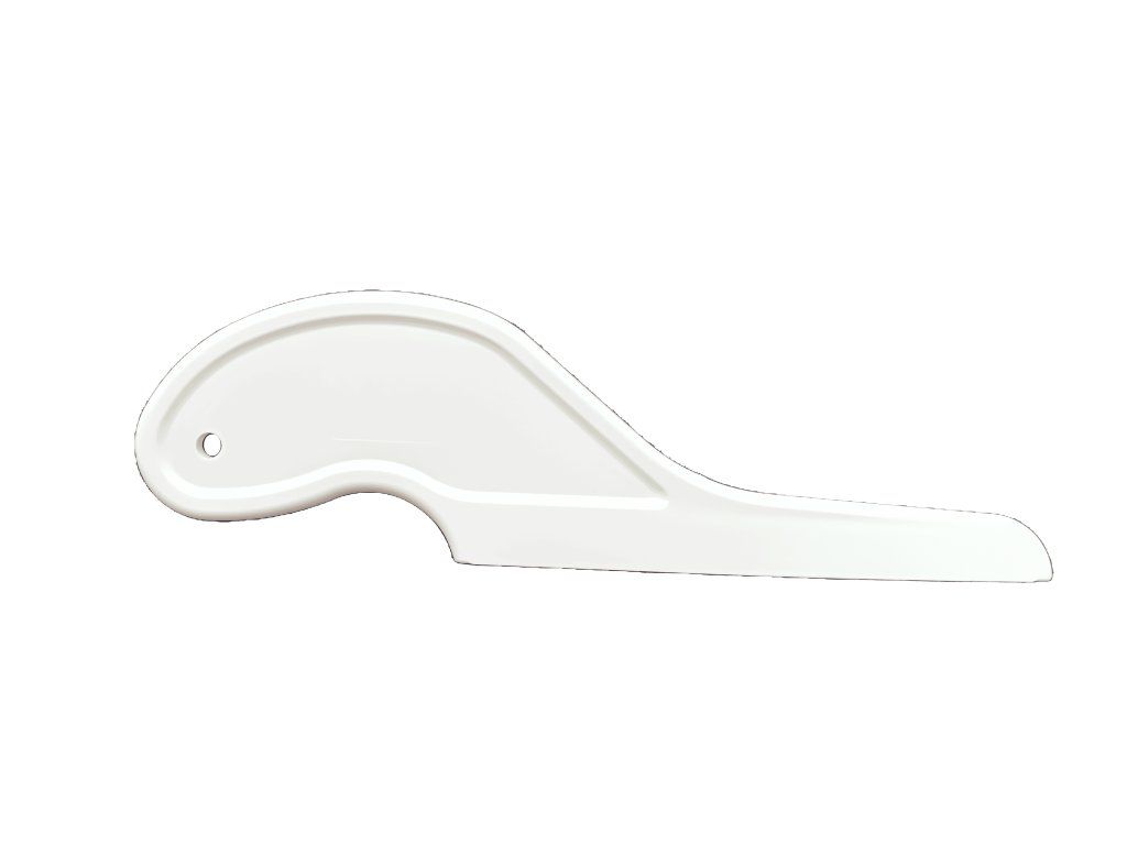 Bílá, tvrdá stěrka (23cm bez gumového břitu) pro výměnný gumový břit (15cm) TIN GT118-6. Vyrobená pro vytlačování kapaliny na těžko dostupných místech (za reproduktory, za 3 brzdovým světlem a jiné) při instalaci zadních oken.
