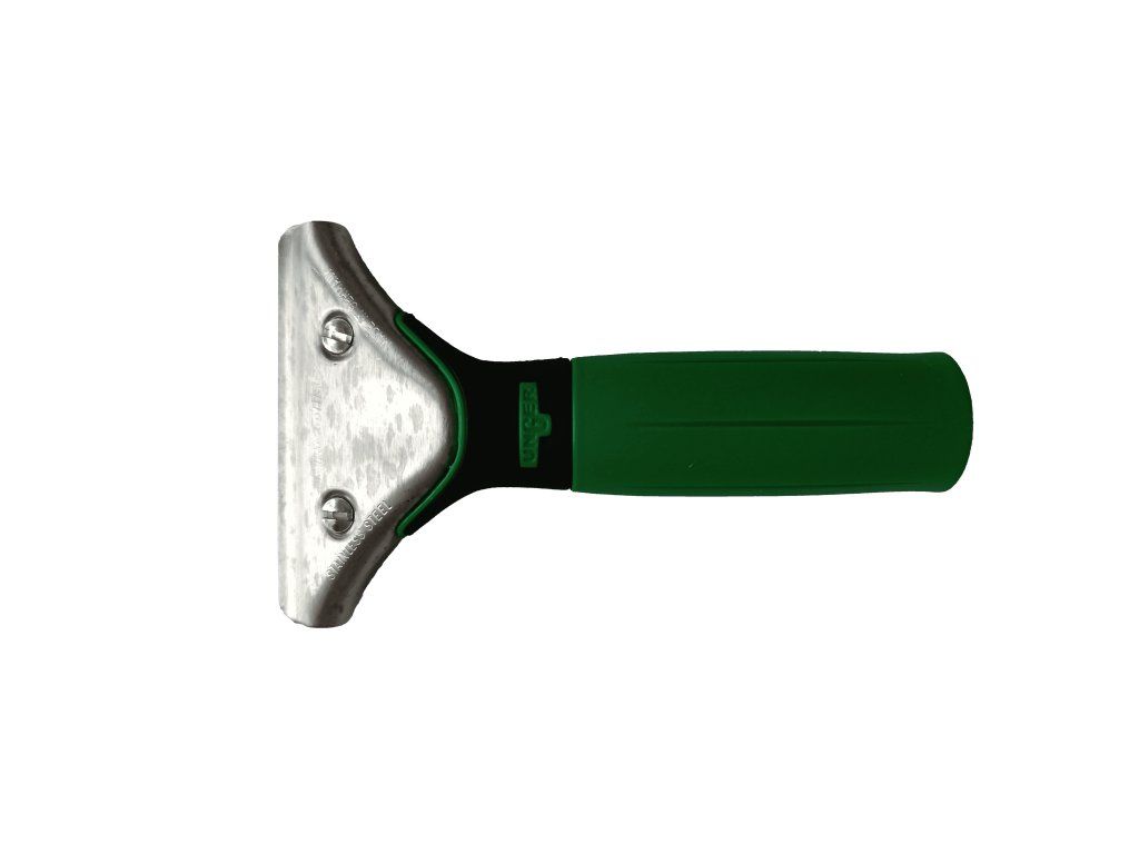 Nerezový držák s rukojetí potaženou zeleným plastem šířky 5" (12,6cm). Pružinový uzávěr pro rychlou výměnu čepele. Ergonomický výstupek na horní části rukojeti umožňuje lepší oporu a držení. Vhodný pro čepele TIN GT257, GT258, GT117, GT117A a všechny běžné čepele. A také pro stěrku s měkkou stírací gumou v nerezové liště GT053 všech šířek pro přípravu-čištění skla. A pro uchycení speciálních tvrdých čepelí.