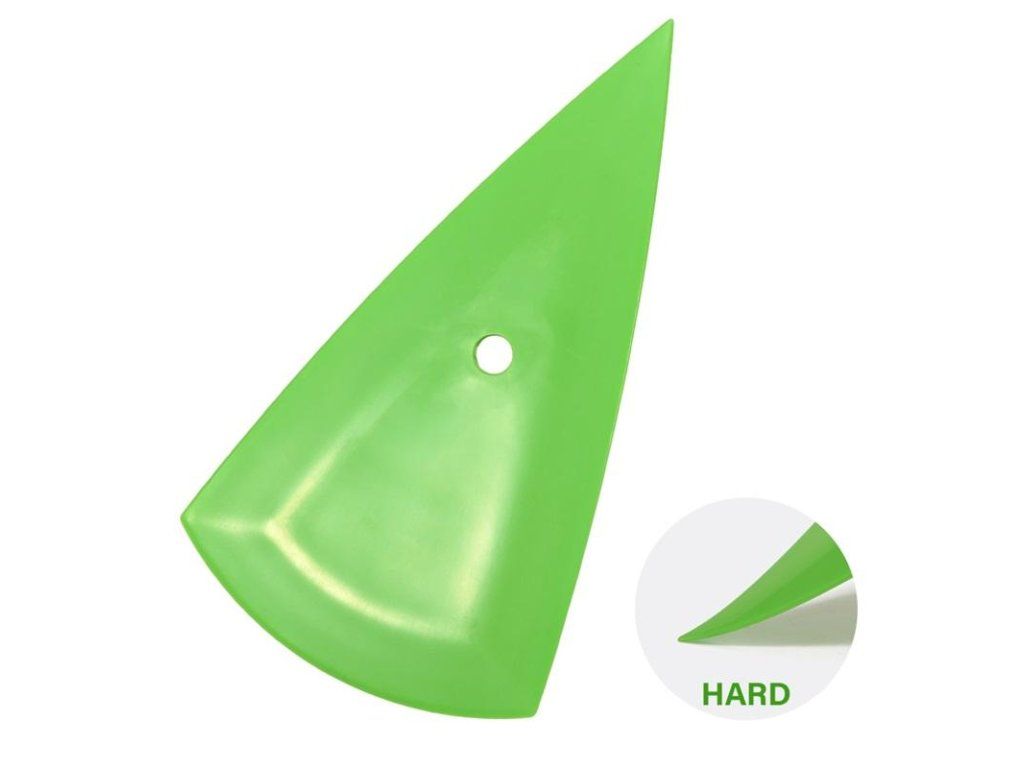 Zelená, konturovací (tvrdá) stěrka (16x8,8cm) je flexibilní na všech tvary povrchů. Skvěle se hodí pro instalaci okenní fólie, Wrap fólie i ochranné PPF folie. Přenáší radiální tlak směrem ven pro rychlou adhezi filmu. Podlouhlý trojúhelníkový tvar umožní dostat se do všech těžko dostupných míst.